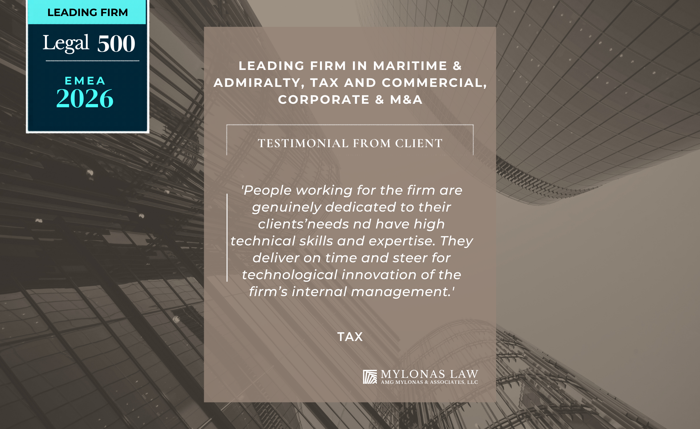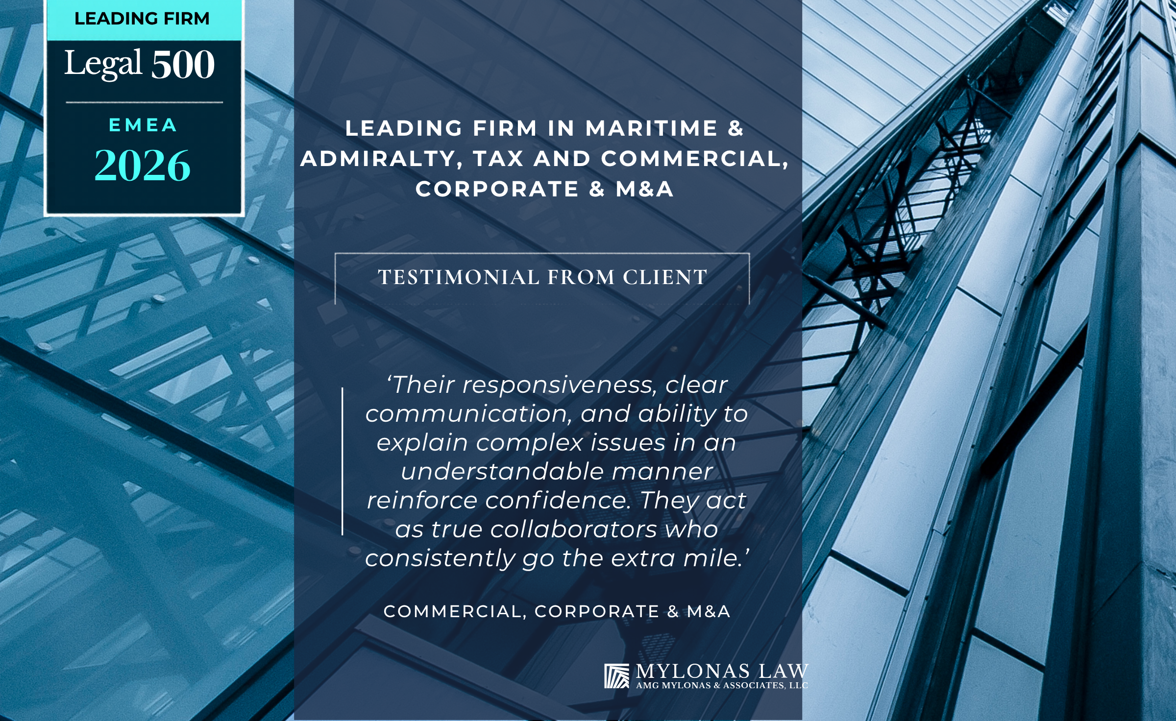 Learn more about our award-winning practice: L500 | AMG Mylonas & Associates, LLC > Cyprus | Legal 500 law firm profiles | Rankings